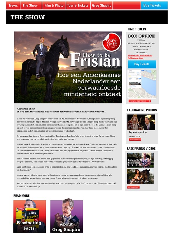 Op basis van de succesvolle Fascinating Friesland film waarin Greg Shapiro op humoristische wijze Friesland promoot, ontstond het idee om een stand-up comedy show te ontwikkelen om Friesland als zakelijke bestemming te promoten.